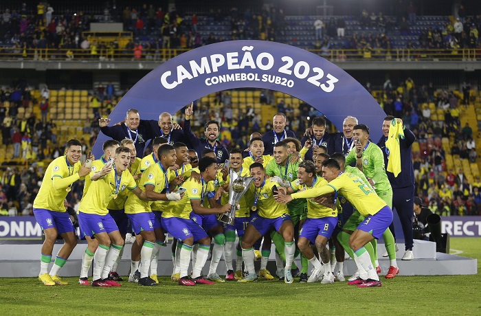La selección de Brasil se coronó campeón del suramericano sub-20 2023 de la Conmebol al vencer a Uruguay 2-0 en la última fecha del hexagonal final disputado en el estadio El Campin de la ciudad de Bogotá.